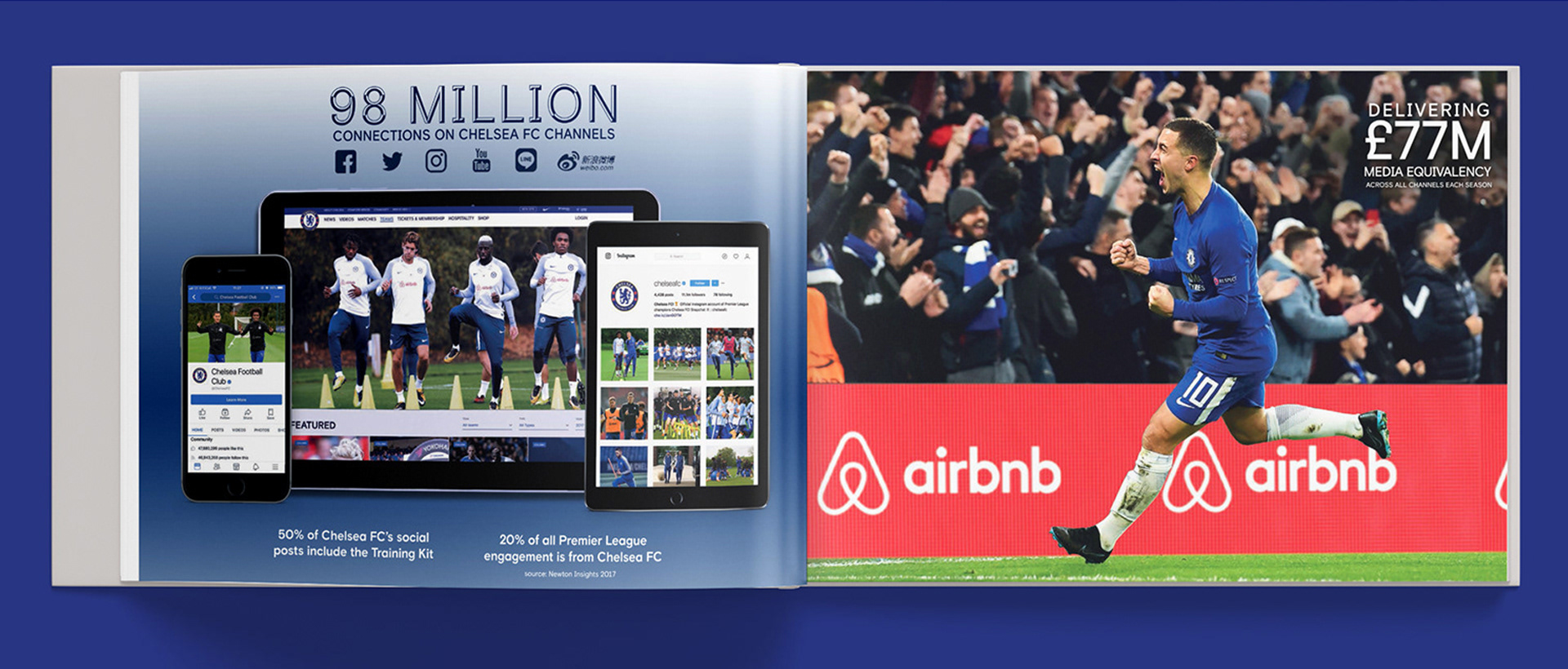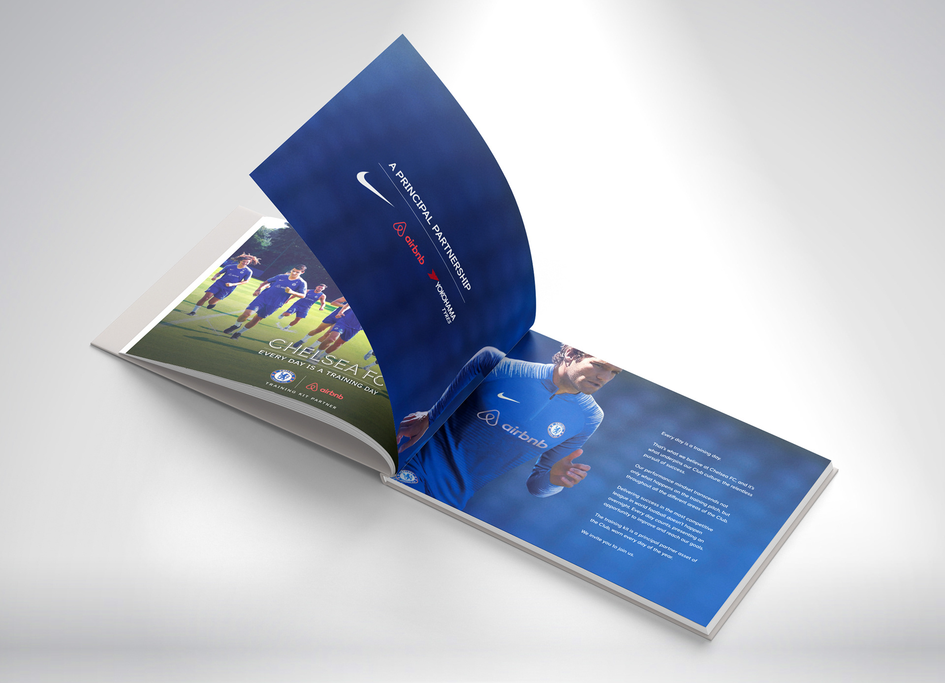 I designed a bespoke video box and printed brochure that showed how potential partner branding could live across training, media, and matchday environments. The content highlighted the commercial rights available and brought each brand into the world of Chelsea FC.