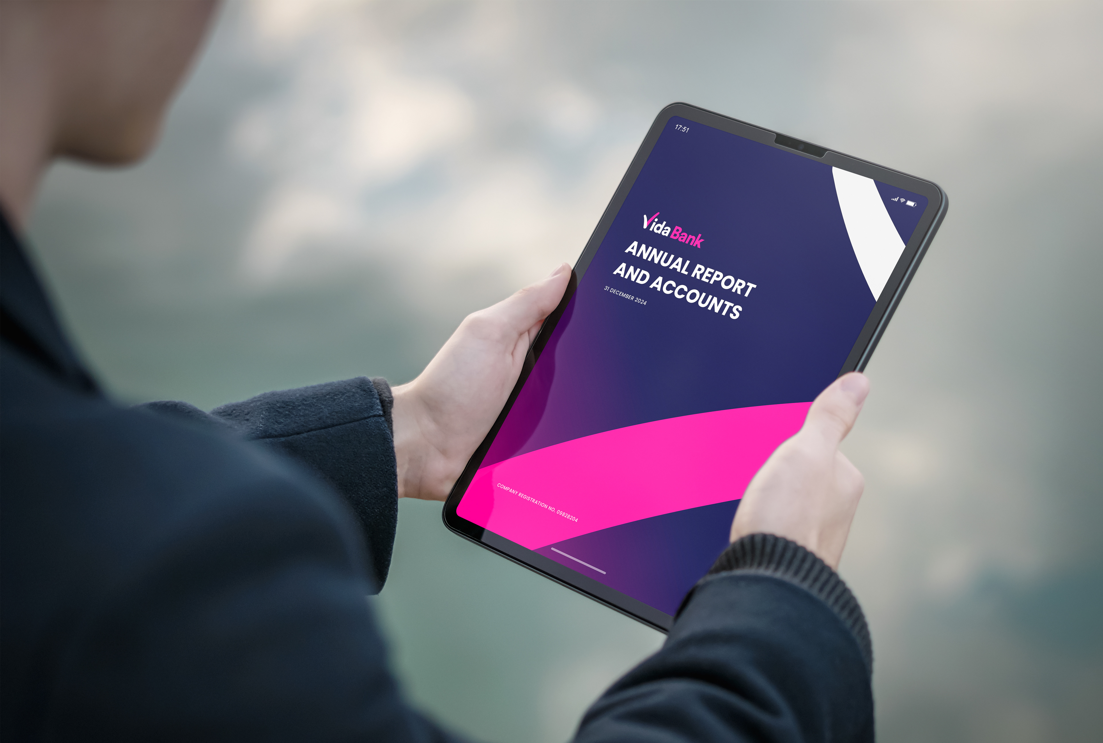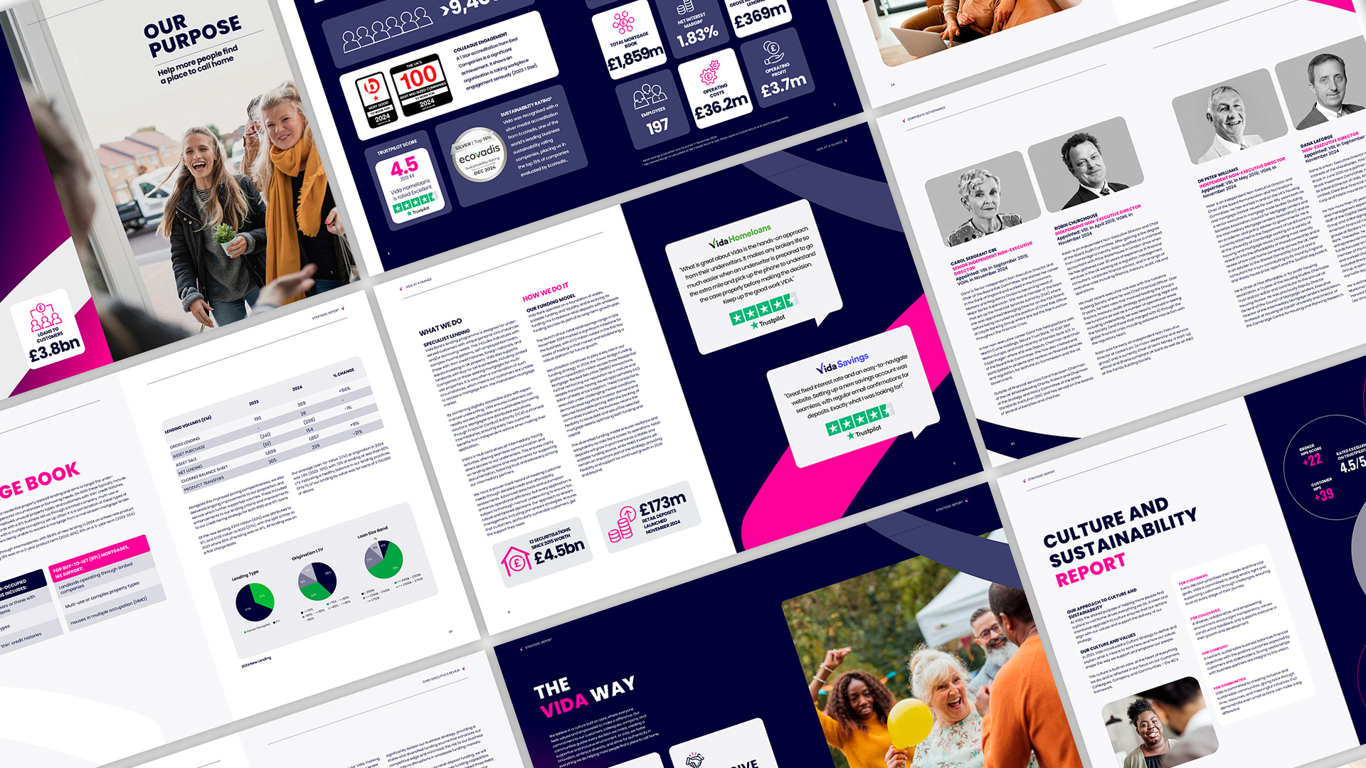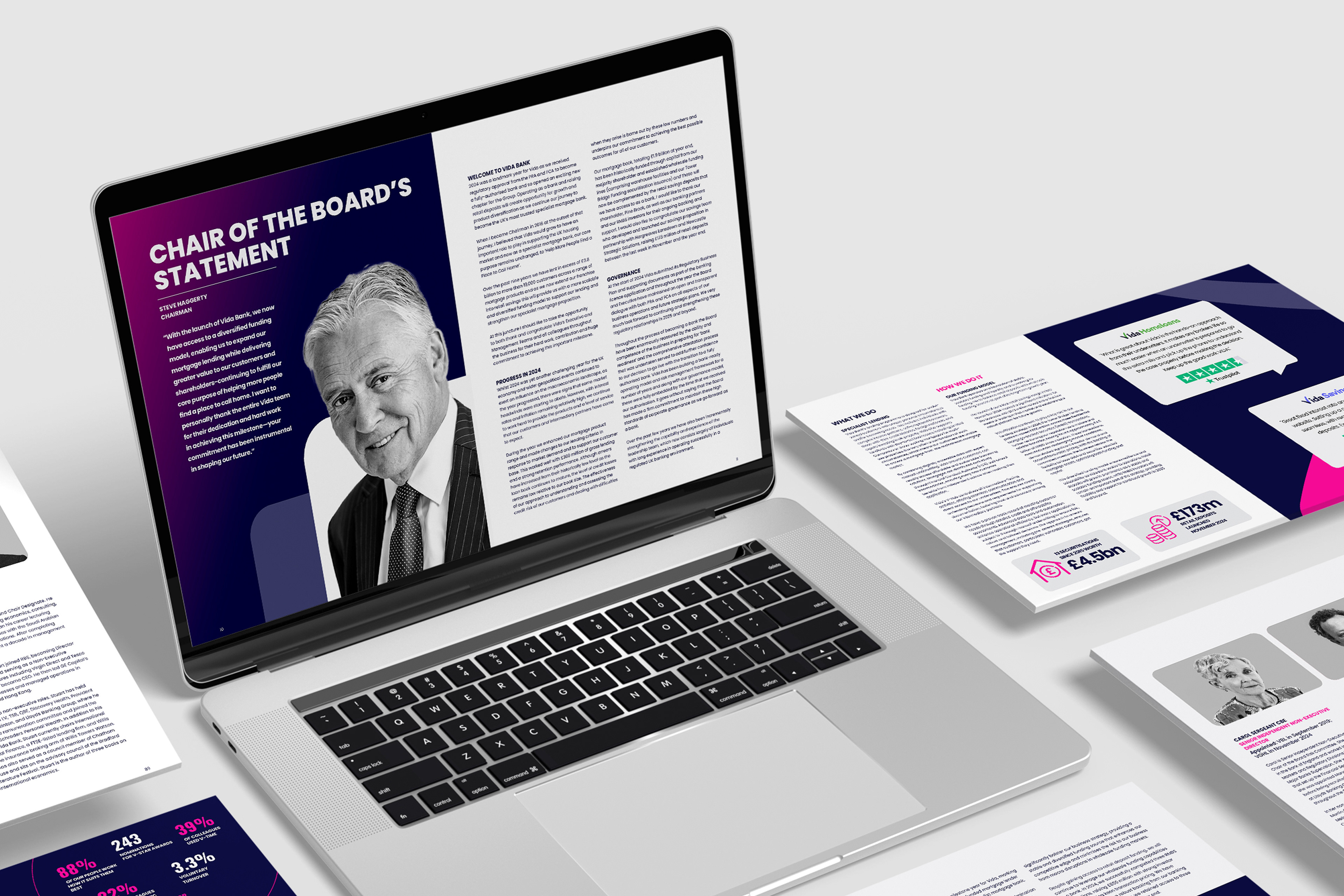 Vida Bank is a UK-based specialist mortgage and savings bank with a modern outlook. I designed a full annual report for them that brings clarity and energy to complex financial content.