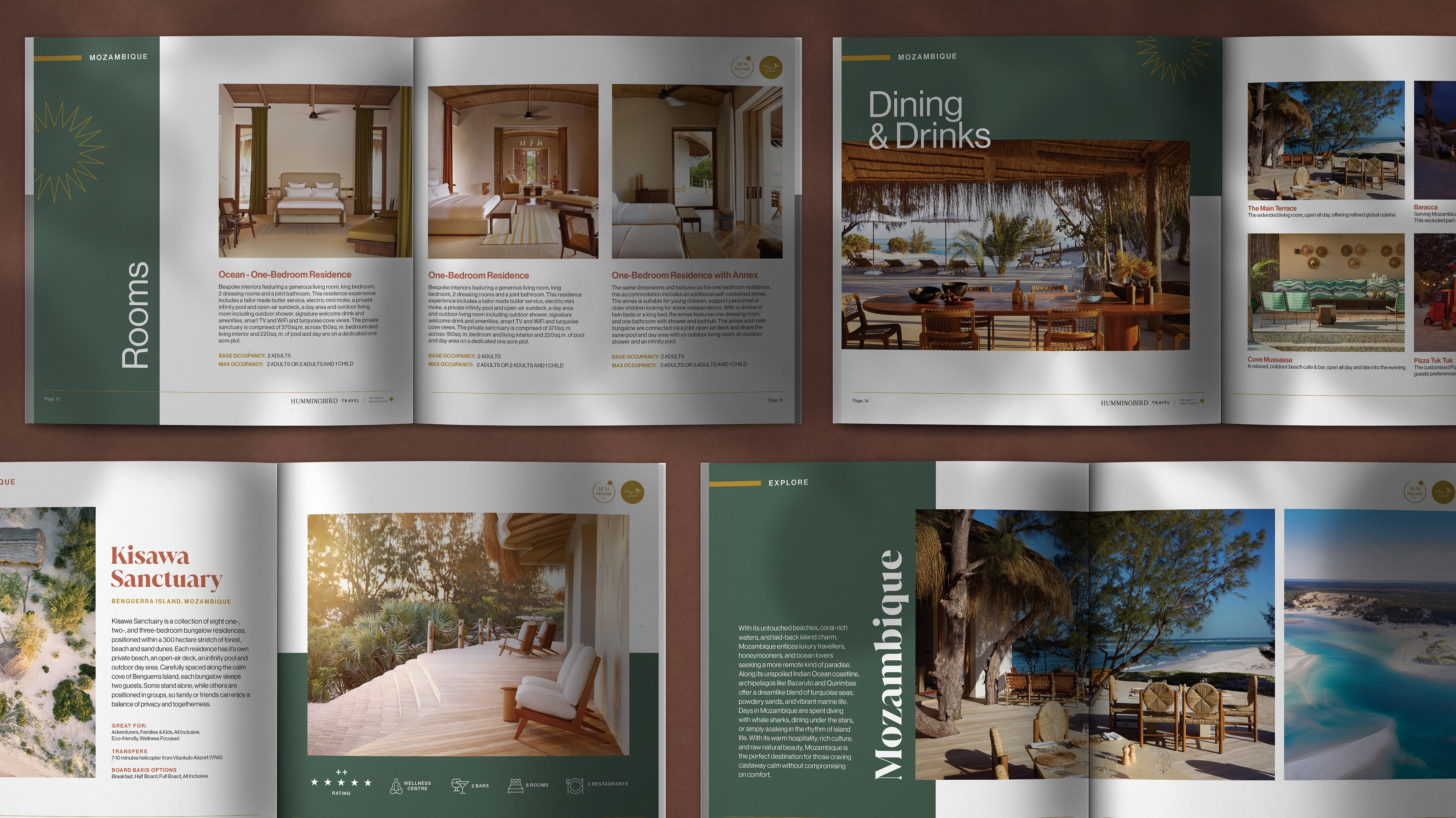 The brief was to design a new book introducing Hum Beyond, a newly launched collection within the Hummingbird Travel brand. The piece needed to feel elevated and timeless, suitable for both print and digital use, while moving away from the client’s older destination brochures.